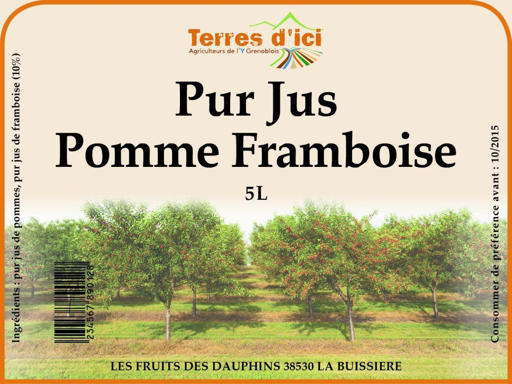 Conception et réalisation d’étiquettes de jus de fruit pour un producteur de fruits.